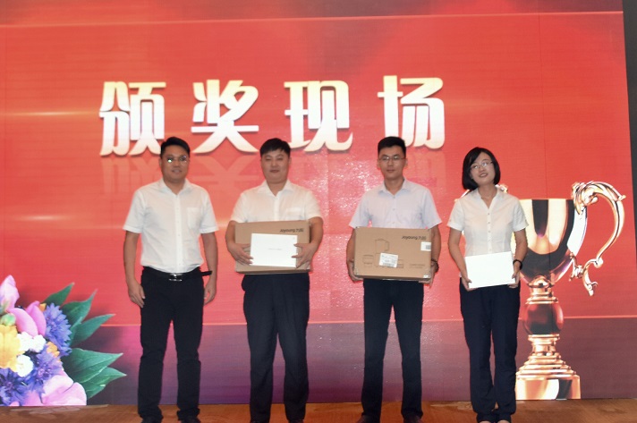 接下來進行的是員工頒獎,包括第二季度優秀服務標兵、6月份優秀銷售員工、第二季度優秀銷售員工,李總為優秀員工頒發獎品并合影留念。獲獎的銷售員一一分享了成功案例,為其他同事做好銷售提供了強有力的基礎。同時,未達成目標的人員也現場兌現了承諾。